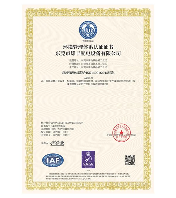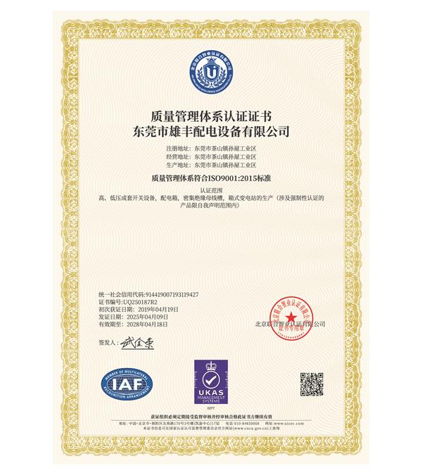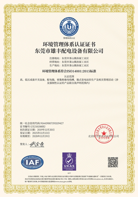 东莞市雄丰配电设备有限公司是专业生产各种高/低压成套开关设备、集产品研发、制造及技术支持于一体的高科技企业。先后获得高新技术企业,民营科技企业等荣誉称号。是ISO9001:2015质量管理体系、ISO14001:2015环境管理体系、GB/T45001-2018职业健康安全管理体系认证及低压成套开关设备3C产品认证企业。现有数万平方米现代化园林式厂房及世界先进水平的数控剪床、数控冲床、数控折弯机床、自动化喷涂流水线及高、低压产品检测设备,工艺装备齐全。为能制造出性能优良、质量可靠的产品奠定了坚实的基础...